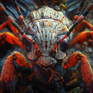 «Generate an 8K 3D rendering of a muscular, anthropomorphic beetl...»