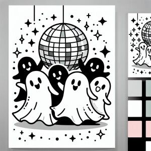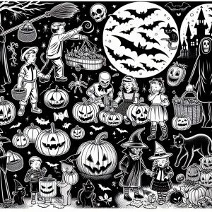«Create a detailed black and white line drawing depicting playful...»