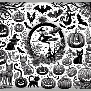 «Design a black and white minimalist illustration featuring charm...»
