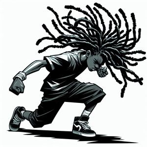 «Show me a teenage black boy with kid length dread locs in a figh...»