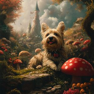 «Create a super realistic background with an Alice in Wonderland...»