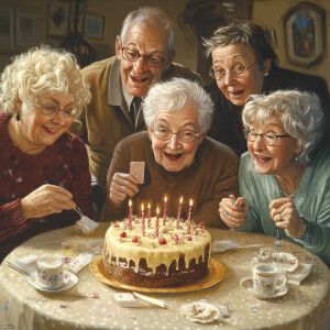 «Create a realistic fine detailed picture of senior citizens cele...»