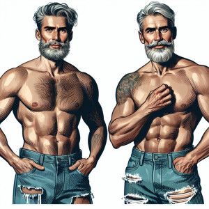«Create an image of two fit and muscular senior men in their 60s,...»