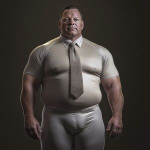 «Create a hyper-realistic full-body scan of a middle-aged, overwe...»