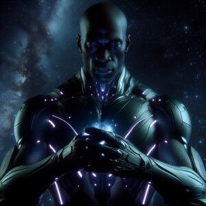«A shape-shifter human with golden hair and glowing eyes transfor...»