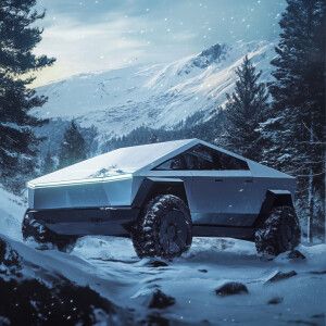 «Design a futuristic Cybertruck with clean, angular lines, a stai...»