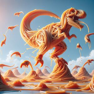 «Spaghetti dinosaurs performing stunts that defies gravity, ultra...»