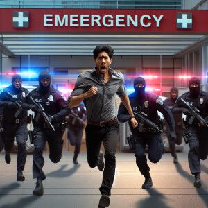 «Create an image depicting a tense scene where an anxious man is...»