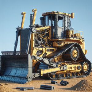 «Design a highly detailed, modern bulldozer that is yellow with b...»