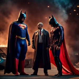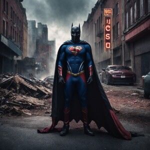«Create an image of a menacing figure, embodying the fusion of a...»
