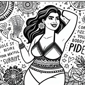 «Design a coloring page that showcases a self-assured plus-size w...»
