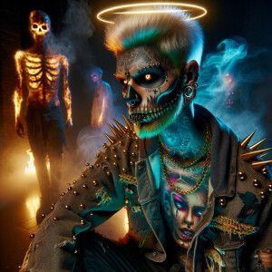 «conjuring gothic satanic zombie wearing urban street clothing wi...»
