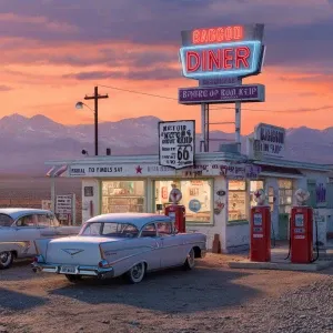 «"A photorealistic vertical photograph of a vintage 1950s roadsid...»