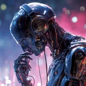 «Dancing people, cyberpunk style, vibrant electric colors (pink,...»