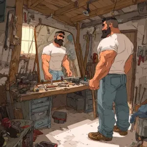 «Cartoon horror cinematic illustration of a lavish hotel room: ve...»