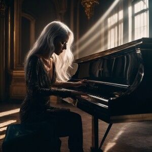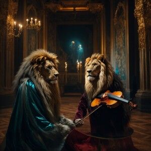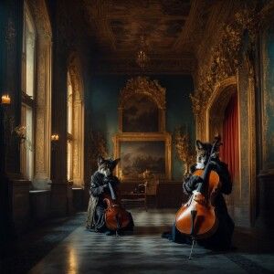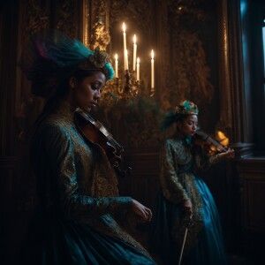 «Grotesque alien beings, distant planet, gracefully playing violi...»
