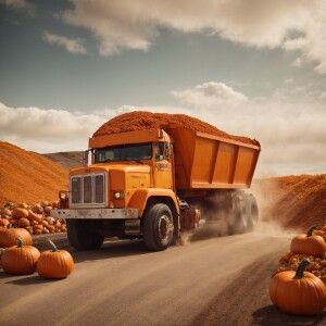 «Photorealistic funny interpretation of pumpkin spice dump truck...»