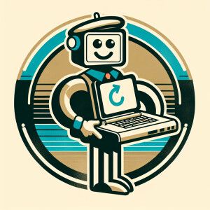 «laptop retro animada, con piernas y brazos, de cara amable»