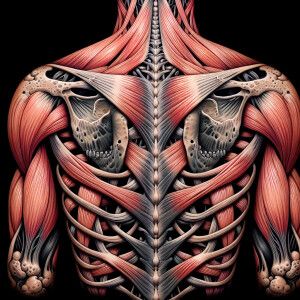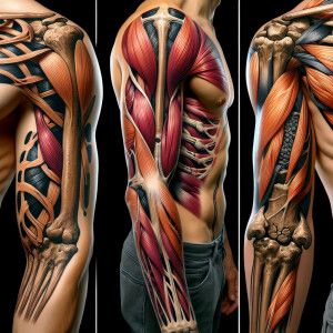 «Design intricate tattoos resembling anatomical tendons on bare s...»