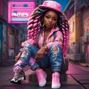 «“An hyper realistic chibi style African American woman with long...»
