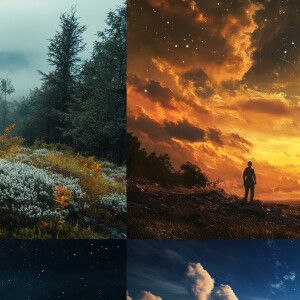 «"A breathtaking view from a mountain peak on a planet in the Pal...»