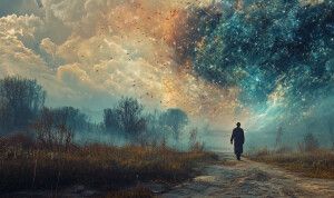 «An expansive, ethereal landscape representing consciousness as a...»