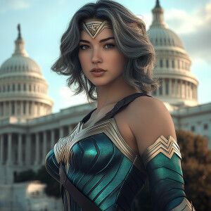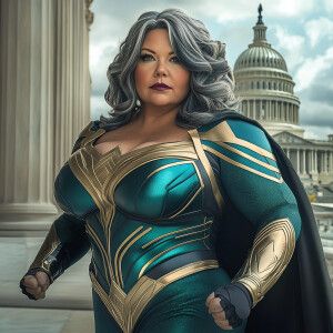 «Create a realistic 4d image of a dark redheaded brunette sitting...»
