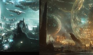 «create an image format 16:9 : we see the big sphere - it's an al...»