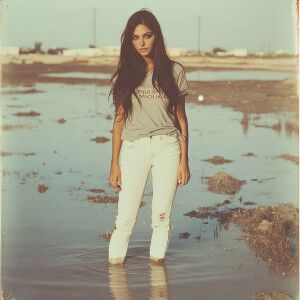 «Create a film photograph from 1976 of a beautiful brunette 23-ye...»