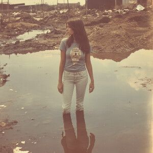 «Faded film photograph from 1972 of a gorgeous, 26-year-old, brun...»