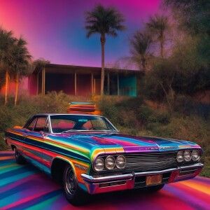«Design a digital painting featuring a 1964 Impala with a lustrou...»