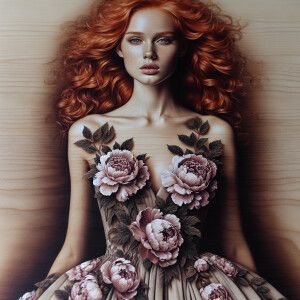 «Create a photorealistic image of a stunning ginger-haired woman...»