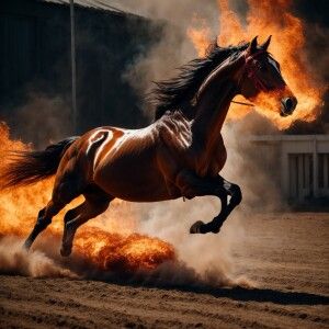 «A horse ablaze gallops swiftly, embodying the essence of blazing...»
