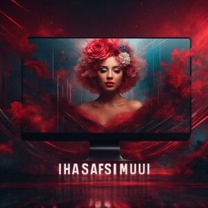 «Create an image of a woman standing on an ocean cliff at sunset,...»