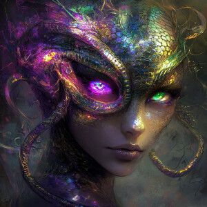 «A stunningly ethereal Gorgon with shimmering metallic scales and...»