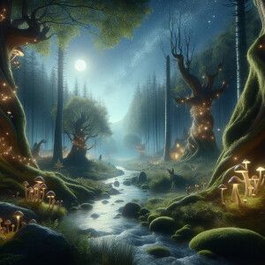 «Picture yourself in a tranquil forest illuminated by giant, glow...»