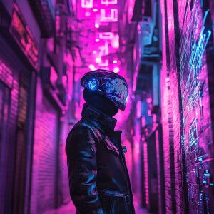 «In a hauntingly beautiful cyberpunk gothic image, a figure dress...»