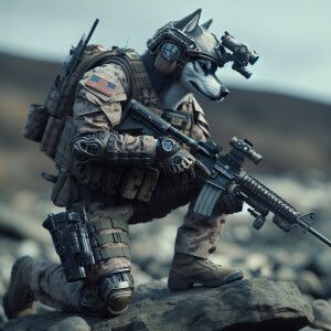 «Create a realistic picture of a humanoid husky as a United State...»