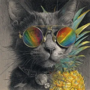 «A steam punk sketch of a cat mixed with a pineapple. Sunglasses,...»