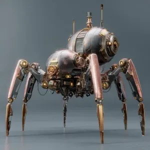 «Generate a cybernetic spider droid with a cyberpunk aesthetic, s...»