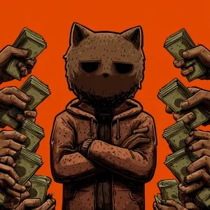 «A masked humanoid cat. Hostage cat trembling behind the counter,...»