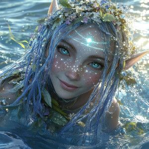 «adorable happy female elf fairy water trolls with sparkling univ...»
