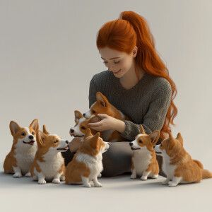 «Create a realistic 4d image of a dark redhead playing with a gro...»