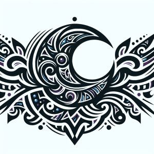 «Create a tattoo design with a tribal aesthetic, where a crescent...»