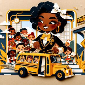 «A layered paper cut style scene with a boujee luxe chibi African...»