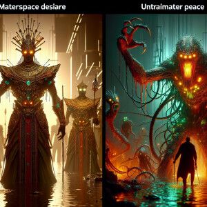 «A monster coming out from the creek, glowing eyes, reaching out,...»