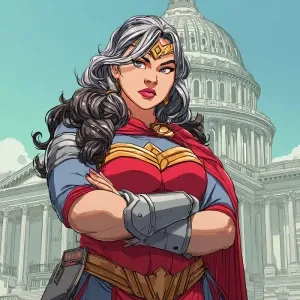«Illustrate a scene featuring a powerful plus-size woman with sho...»