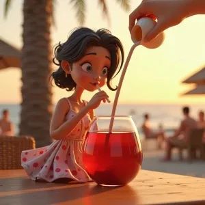 «A playful, cinematic 3D illustration of a larger, stylized woman...»