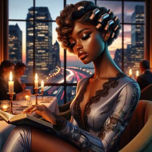 «300dpi caramel skinned African American woman, flawless makeup,...»