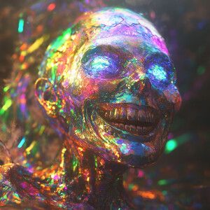 «An ethereal humanoid figure adorned in a shimmering rainbow of c...»